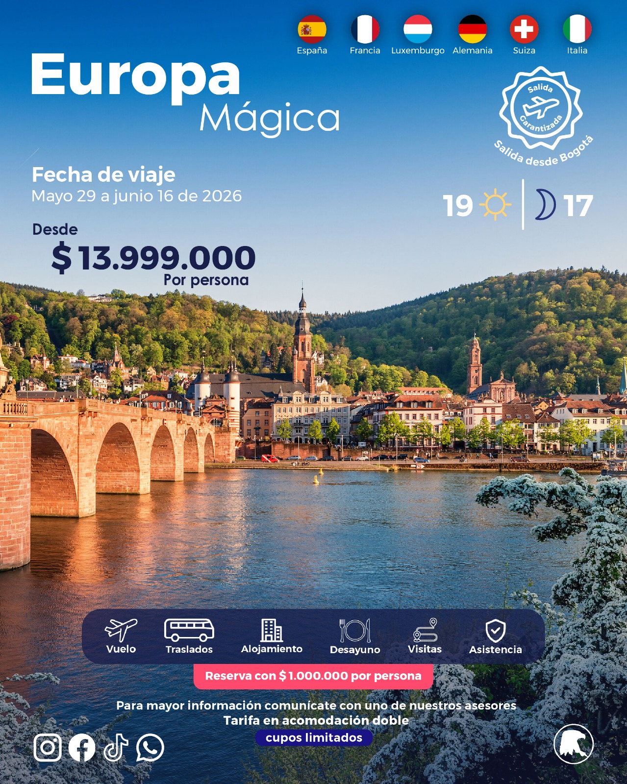 Descubre lo mejor de Europa en un emocionante circuito que te llevará a través de España, Francia, Suiza e Italia. Desde la vibrante Barcelona hasta la romántica París, pasando por los impresionantes Alpes suizos y las encantadoras ciudades italianas, este viaje te ofrece una combinación perfecta de historia, cultura y belleza natural. ¡Prepárate para una aventura inolvidable en Europa!